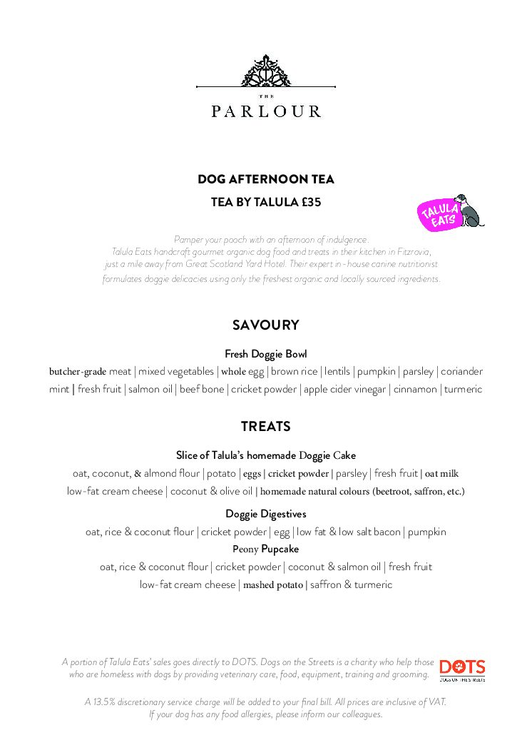 Dog Afternoon Tea at The Great Scotland Yard Hotel