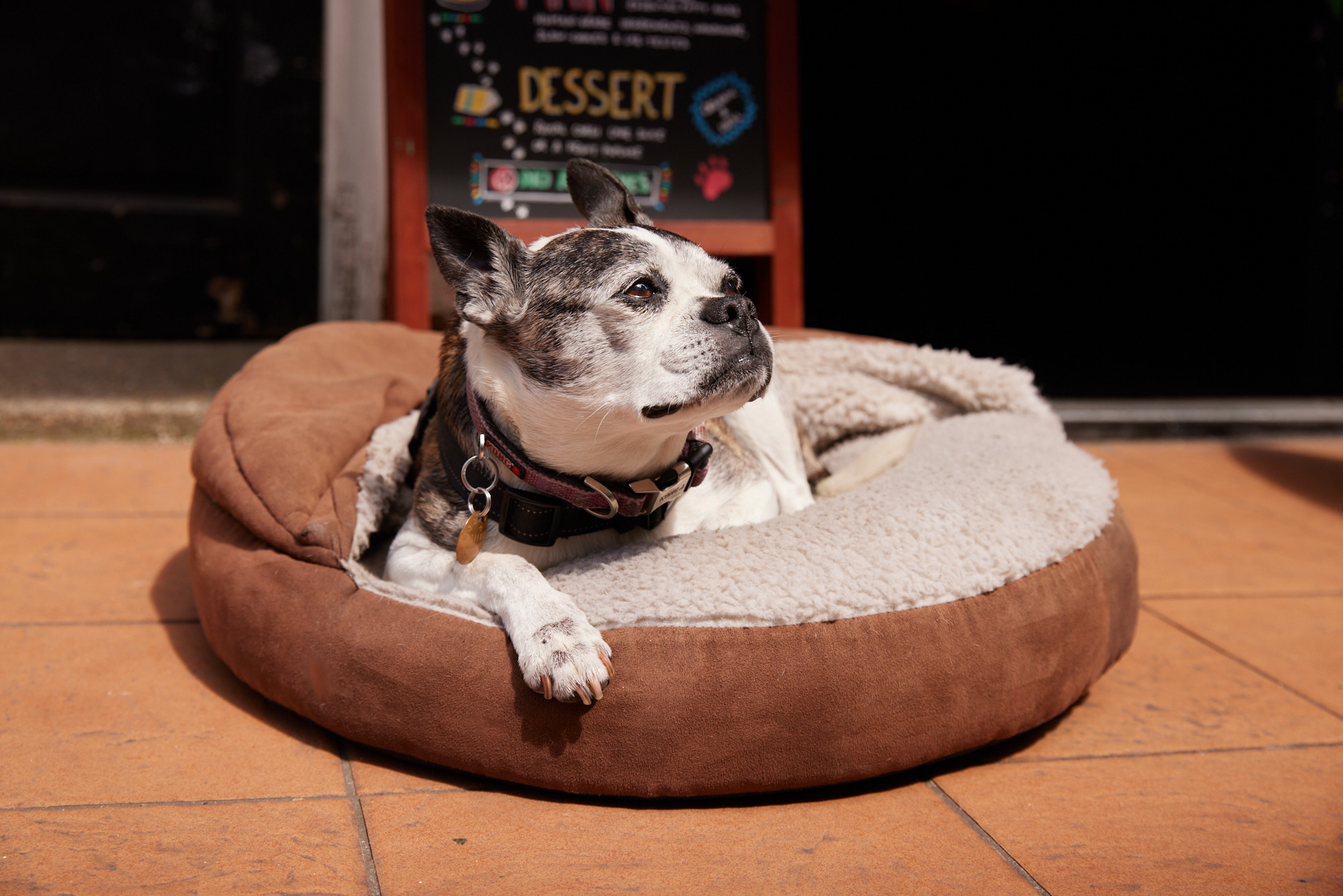 To figure out where the little dog had come from, David took her to the local no-kill animal shelter to be scanned for a chip. To his surprise, he discovered that she had escaped from that exact shelter on multiple occasions. Smart and a little stubborn, I felt like we would get along great and we really hoped her breed would be a good match for our Mojito. When David showed me her picture and I was looking at a beautiful Boston Terrier, I knew she would fit right into our little family.